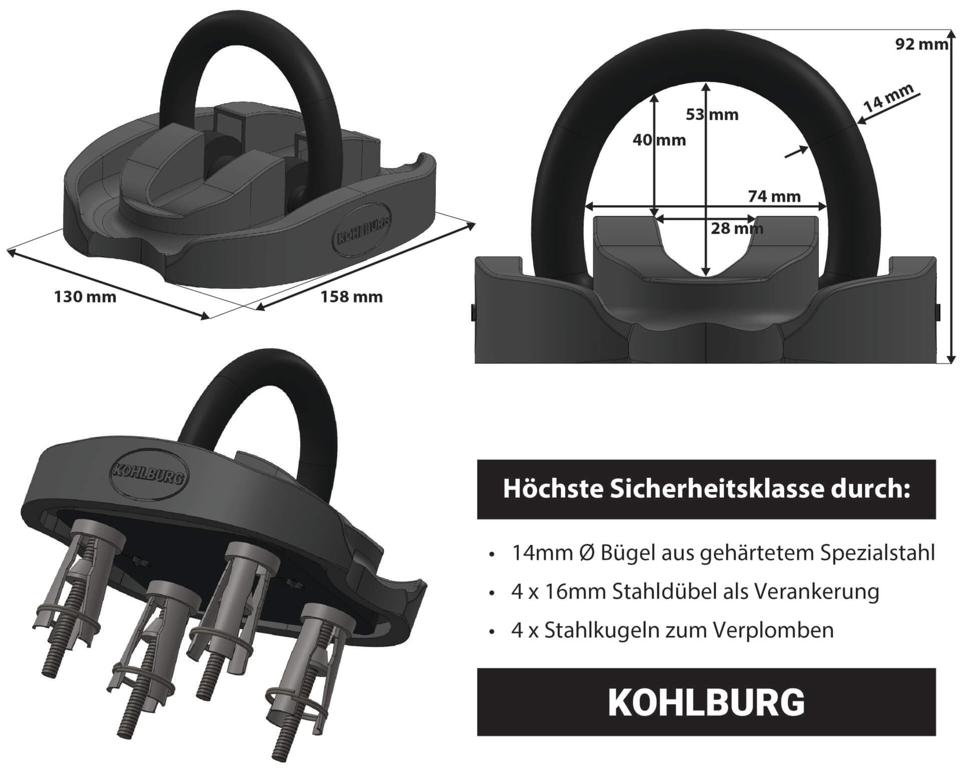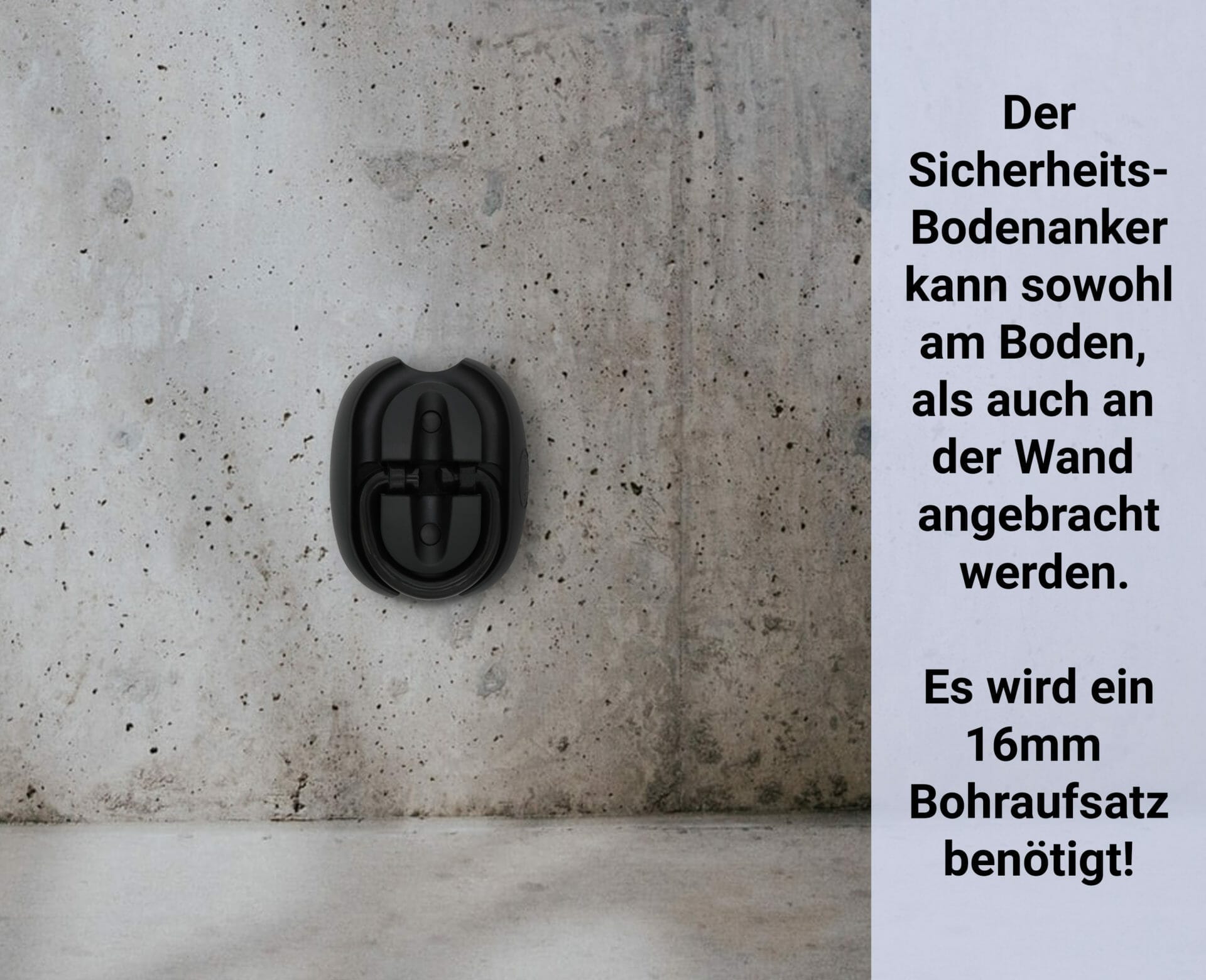 - HÖCHSTE SICHERHEITSKLASSE – Der 14 mm starke Bügel besteht aus gehärtetem Spezial-Stahl. Dank dieser Massivität und der Stahlgüte besitzt der Fußbodenanker die Sicherheitsklasse 10 von 10. Damit schützt es Ihr Zweirad effektiv gegen Bolzenschneider, Hebel & Metallsägen