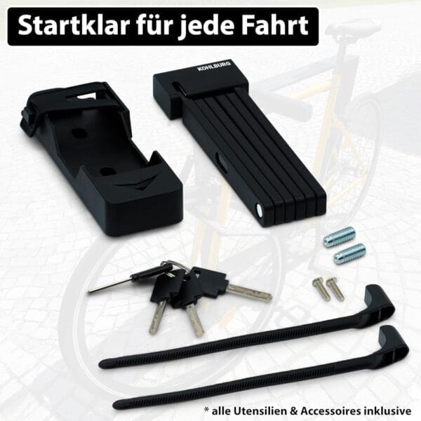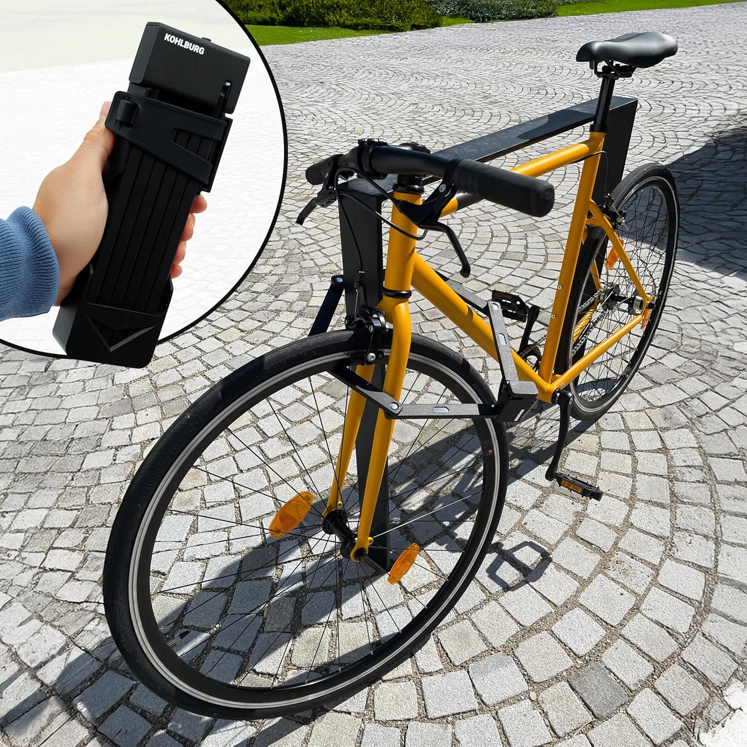 - ROBUSTE & KLAPPERFREIE HALTERUNG – Sie suchen ein Faltschloss mit Halterung, die einfach und zuverlässig funktioniert? Dann sind Sie hier richtig. Einfach zu installieren für alle gängigen Fahrrad- & E-Bike-Rahmen (Umfang bis 20 cm / Durchmesser bis 6,4 cm) oder an der Getränkehalterung, alle Utensilien inklusive. Das Fahrradschloss lässt sich nach vorn entnehmen, ideal für enge Rahmen