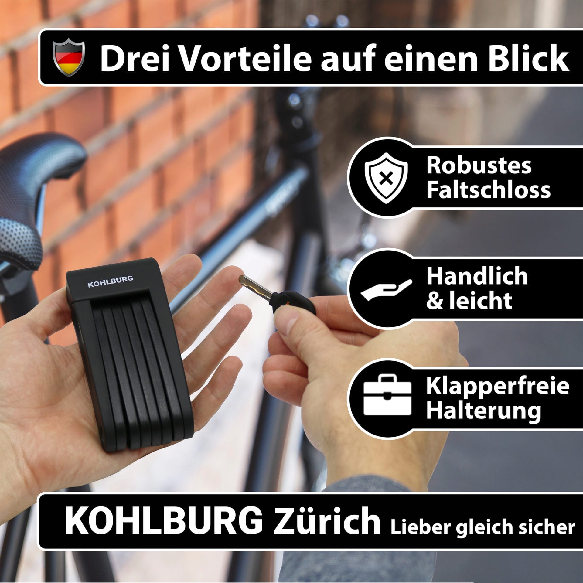 - SICHERHEIT AUF IHRER FAHRRADTOUR – im Gegensatz zu anderen leichten Faltschlössern besteht das KOHLBURG Faltschloss aus gehärtetem Stahl und bietet damit einen robusten Schutz; das Schloss besitzt zudem eine 2-Komponenten-Ummantelung um Ihren Fahrradlack zu schützen