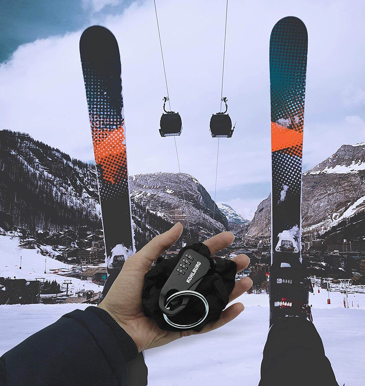 - SICHERER ALS KABELSCHLÖSSER & GENAUSO KOMPAKT – das Kombinationsschloss hat eine Länge von 129 cm, was ein bequemes Anschließen mehrerer Gegenstände ermöglicht; passend für Ski, Snowboard, Kinderwagen, Gartenmöbel, Koffer und Helm für Motorrad & Fahrrad