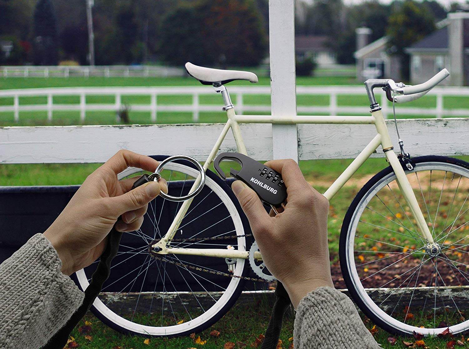 - SICHERES SCHLOSS FÜR DIE JACKENTASCHE – anders als die meisten Taschenschlösser besteht dieses Schloss nicht aus Draht sondern aus sicheren Kettengliedern mit speziell gehärtetem Stahl – damit bietet es für ein Taschenschloss den größtmöglichen Diebstahlschutz; zusätzlich hat das Schloss 2 Kettenringe (siehe Foto), die zusätzliche Anschließmöglichkeiten erlauben