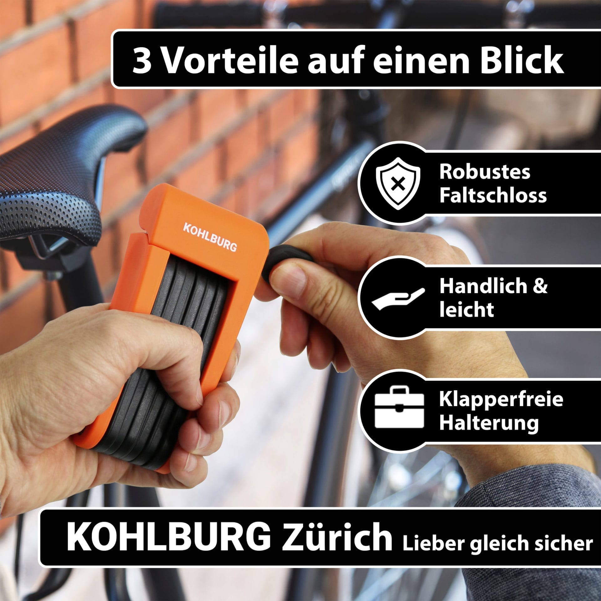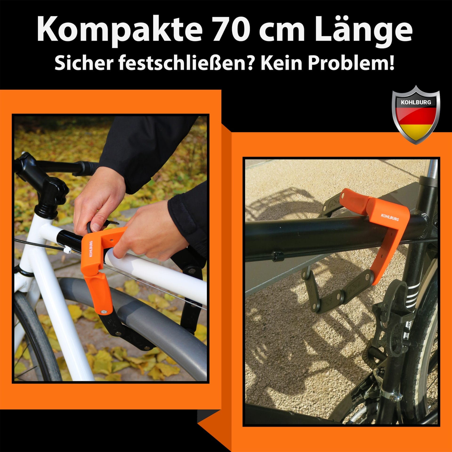 - SICHERHEIT AUF IHRER FAHRRADTOUR – im Gegensatz zu anderen leichten Faltschlössern besteht das KOHLBURG Faltschloss aus gehärtetem Stahl und bietet damit einen robusten Schutz; das Schloss besitzt zudem eine 2-Komponenten-Ummantelung um Ihren Fahrradlack zu schützen