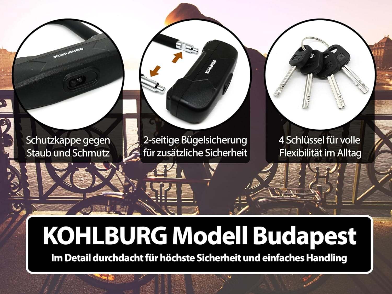 Die Vorteile des KOHLBURG Bügelschlosses vom Typ Budapest noch einmal auf einem Blick: