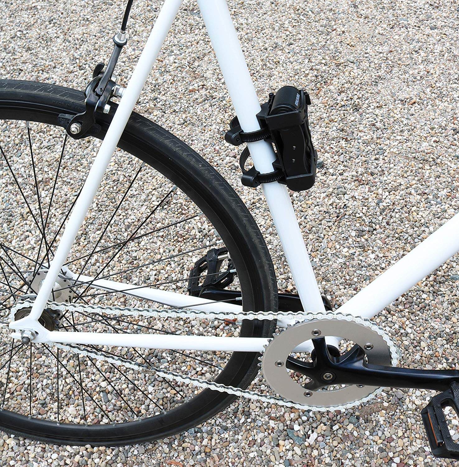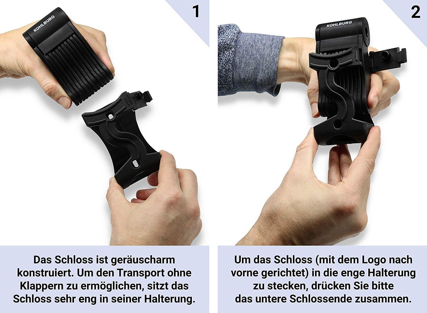 Um Geräusche während der Fahrt zu verhindern, ist das Schloss so konstruiert, dass es in der Halterung sehr eng anliegt. So wird verhindert, dass das Schloß während der Fahrt durch Klappergeräusche stört.